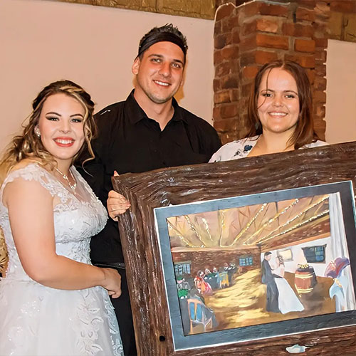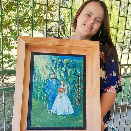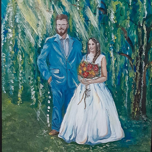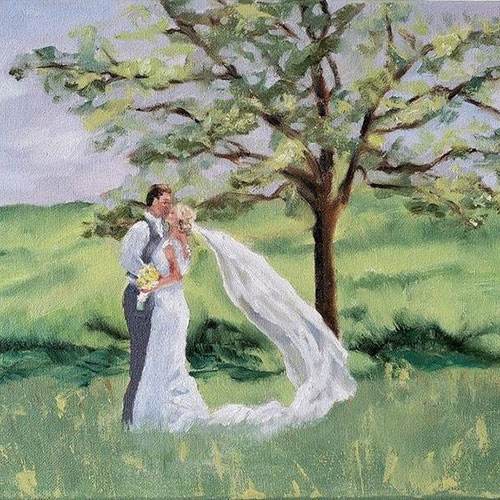 Monica also specializes in capturing the magic of weddings through her unique wedding paintings. Preserve the memories of your special day with a custom piece of art that reflects the love and joy of your union.